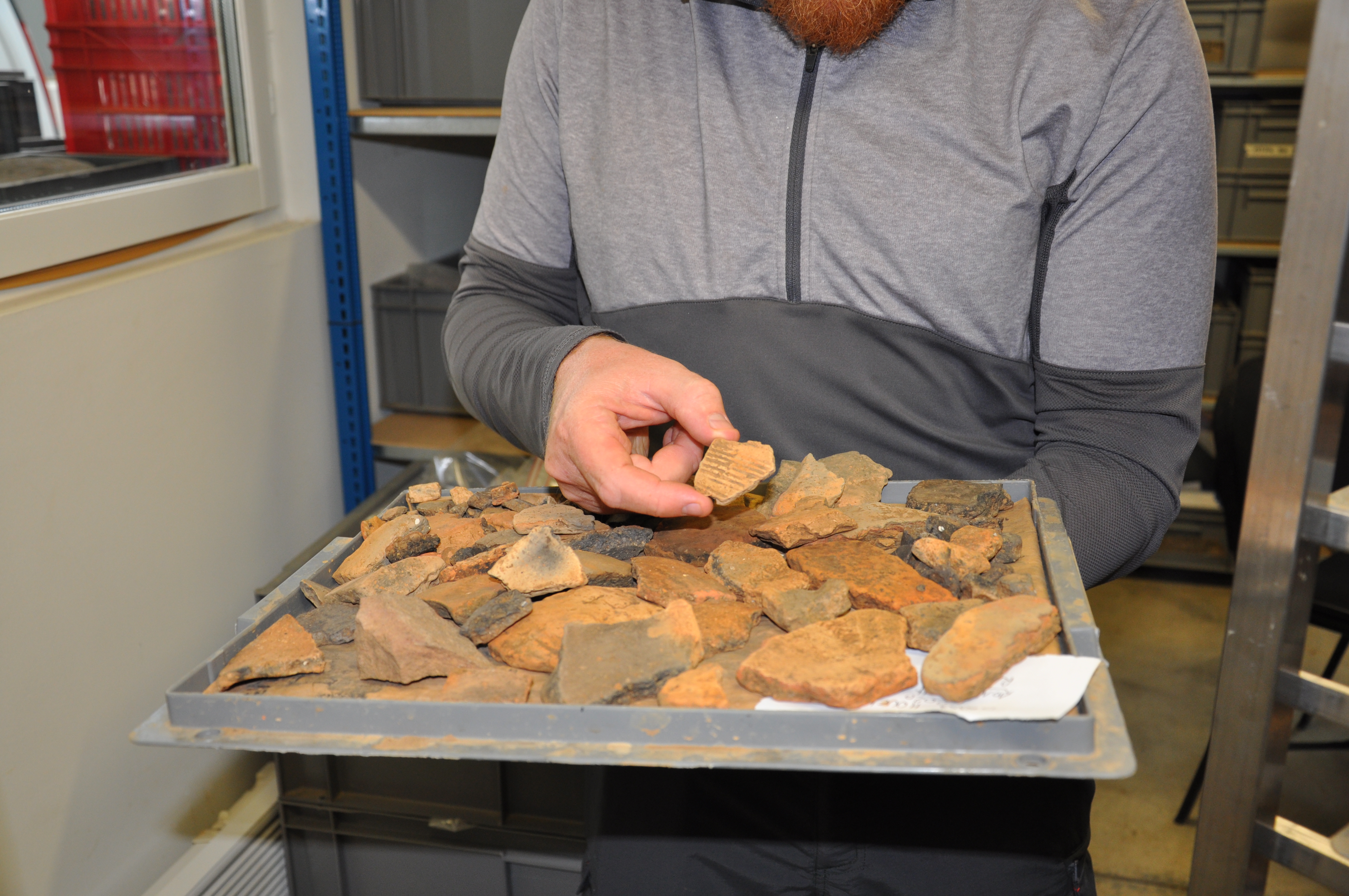 Les rejets observés dans les fosses sont constitués de parois de four, de fragments de bûche calcinée et de mobilier céramique. D’autres indices témoignent d’une activité artisanale passée comme la découverte de pesons triangulaires qui servaient autrefois à lester les cordes de métiers à tisser.