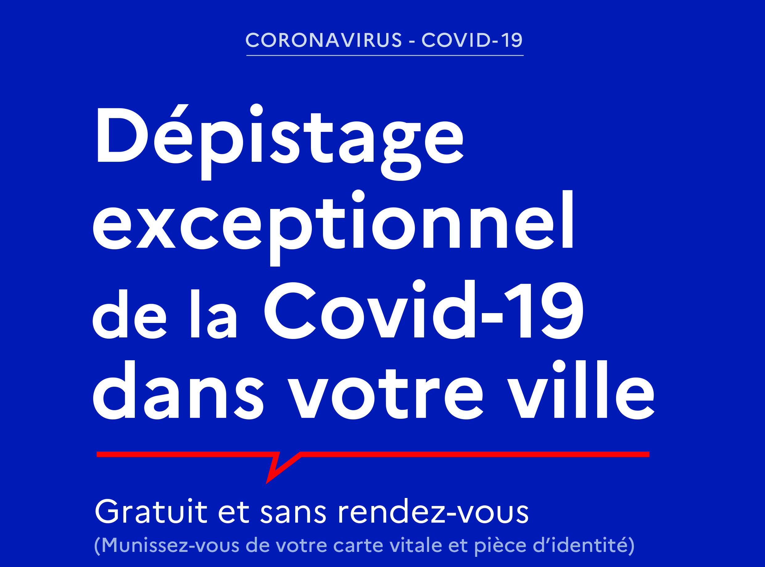 La Covid-19 circule activement sur le territoire de l'Agglomération. Pour vous protéger, protéger vos proches et ralentir l’épidémie, l’Agence régionale de santé organise avec la Communauté d'Agglomération une campagne de dépistage exceptionnelle à proximité de chez vous, en plus de l’offre de dépistage habituelle de vos