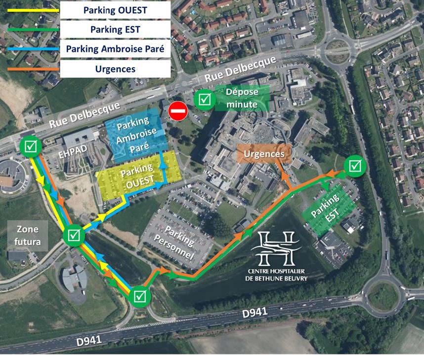 Suite aux travaux du bloc opératoire, l'entrée "historique" du Centre Hospitalier de Béthune Beuvry a été déplacée !