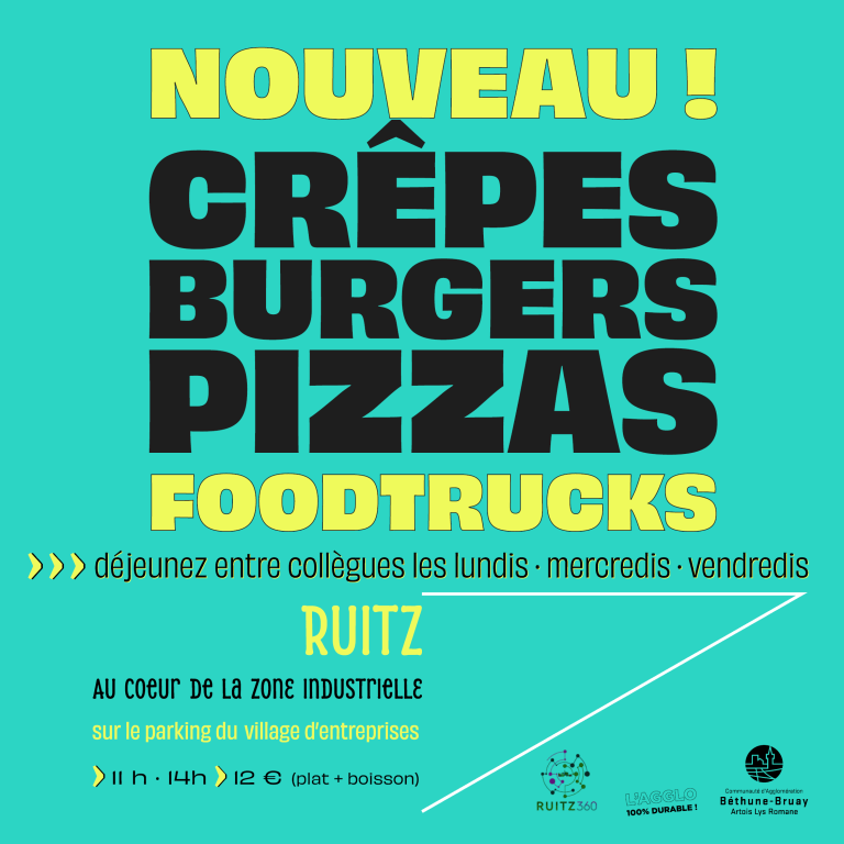 Dès le lundi 7 avril, la Communauté d’Agglomération lance une expérience gourmande dans la zone industrielle de Ruitz. Pour la première fois, trois food-trucks vont prendre place sur le parking de la pépinière pour offrir une pause déjeuner conviviale et savoureuse aux salariés et usagers de la zone industrielle de Ruitz et alentours (Noeux-Labourse...)
