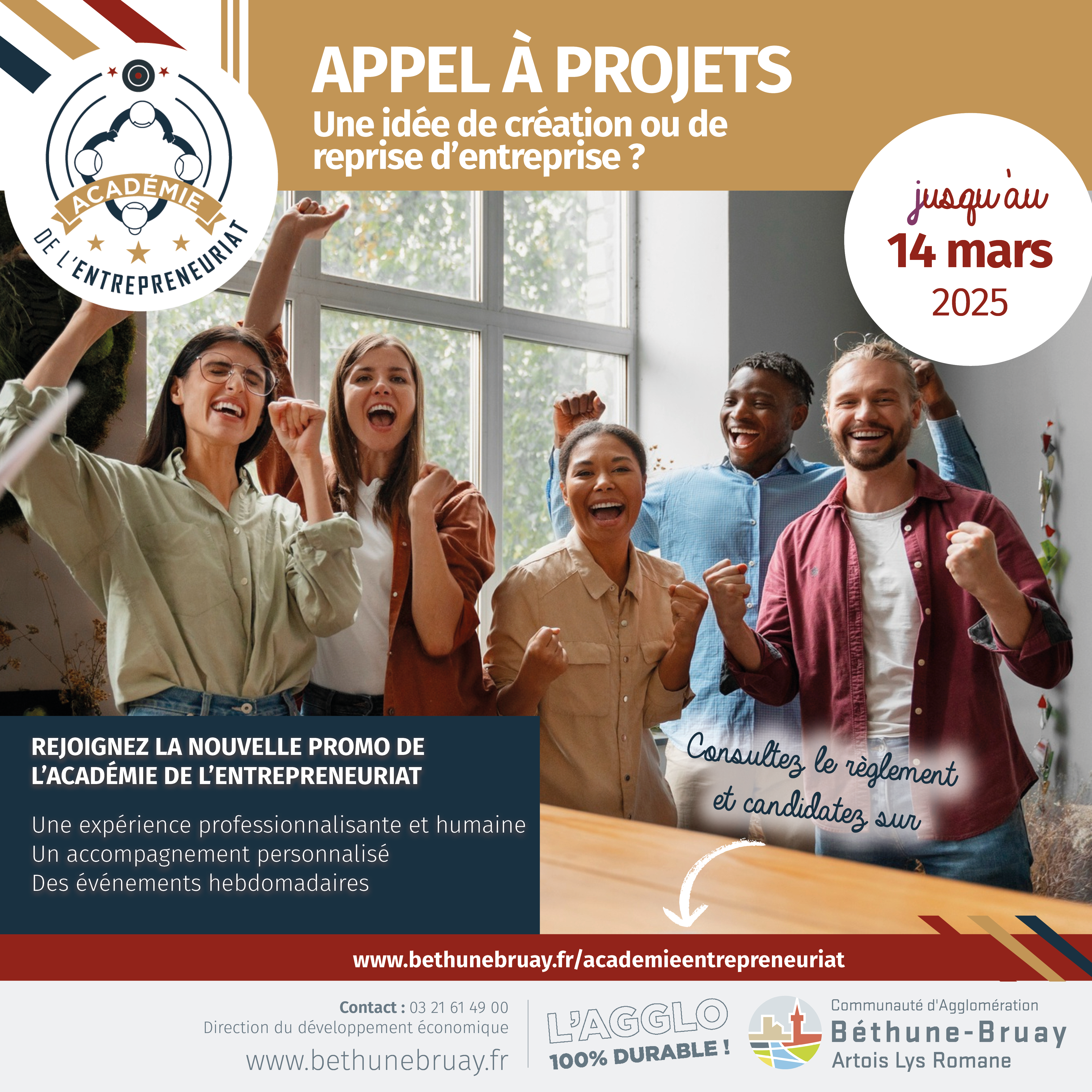 Bénéficiez de l’expertise de professionnels pour créer et gérer votre entreprise dans le cadre de la prochaine promotion de l'Académie de l’Entrepreneuriat : un dispositif piloté et financé par la Communauté d'Agglomération de Béthune-Bruay, Artois Lys Romane.