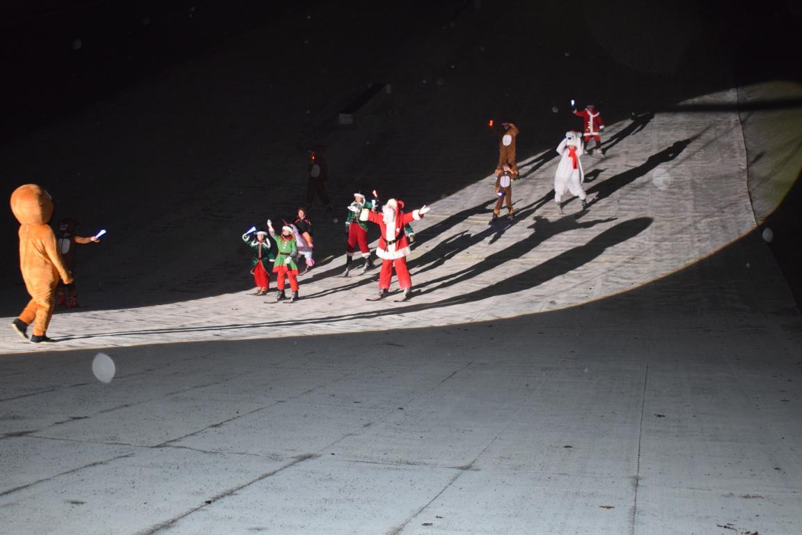 Puis, il est de coutume à Nœux-les-Mines de voir le Père Noël dévaler la piste du stade de glisse, sur ses skis, suivi de toute une joyeuse parade d’« illuminés ». En provenance directe de Laponie, il s’arrêtera un instant pour saluer les enfants, distribuer des confiseries et noter les idées cadeaux des retardataires.