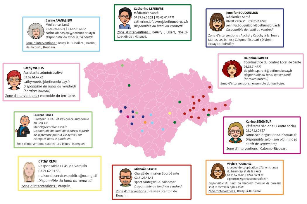Retrouvez ci-dessous leurs coordonnées ainsi que leur zone d’intervention grâce au code couleur :