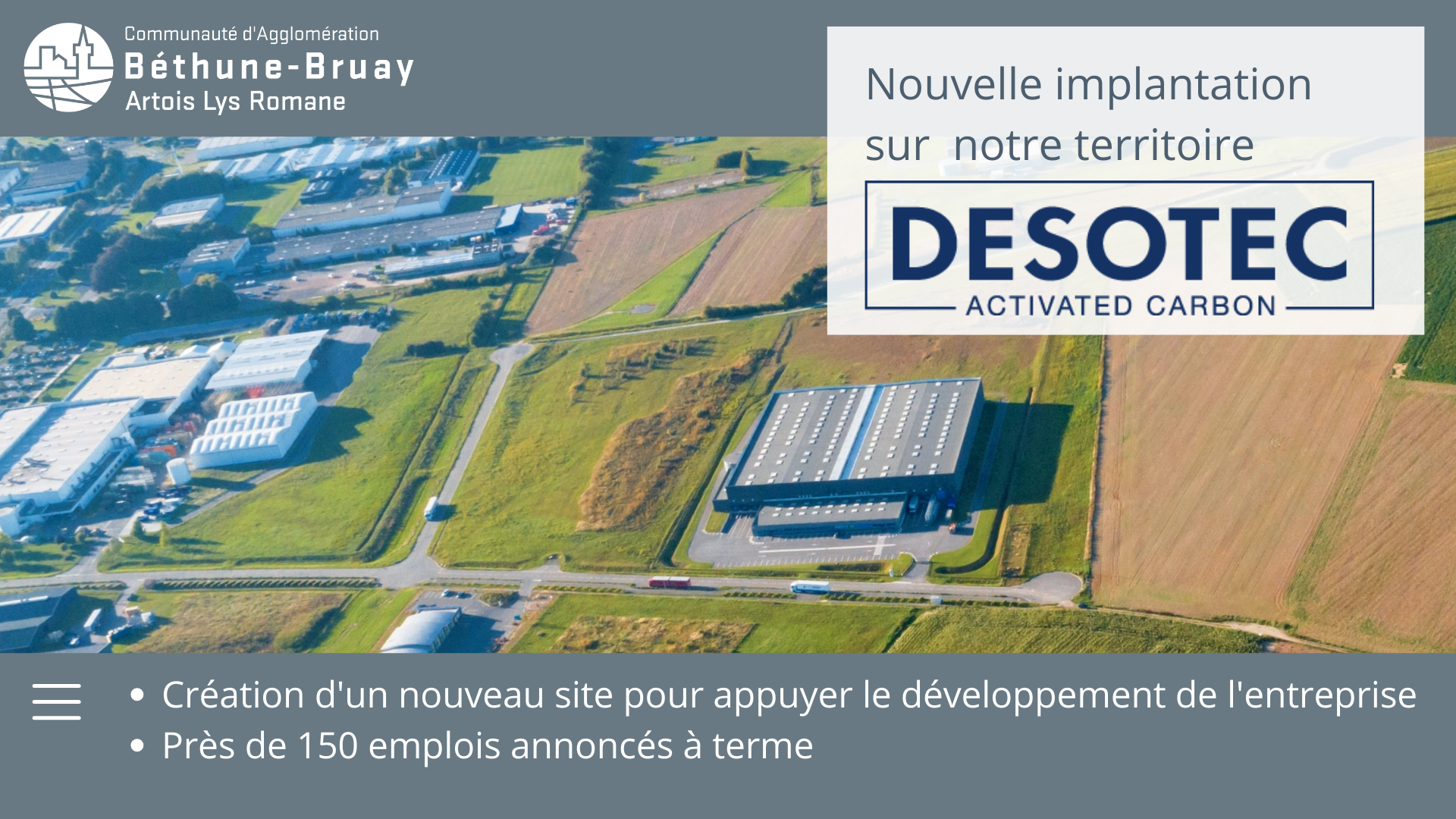 L’entreprise belge DESOTEC, spécialisée dans le charbon actif, annonce la création d’un nouveau site pour appuyer son développement. Au terme de plusieurs visites et entretiens, DESOTEC confirme son projet d’investissement en Hauts-de-France, sur la Zone Industrielle de Ruitz au sein de la Communauté d’Agglomération de Béthune-Bruay, Artois Lys Romane. L’idée est de pouvoir disposer d’un nouveau site de production dédié pour le marché français.