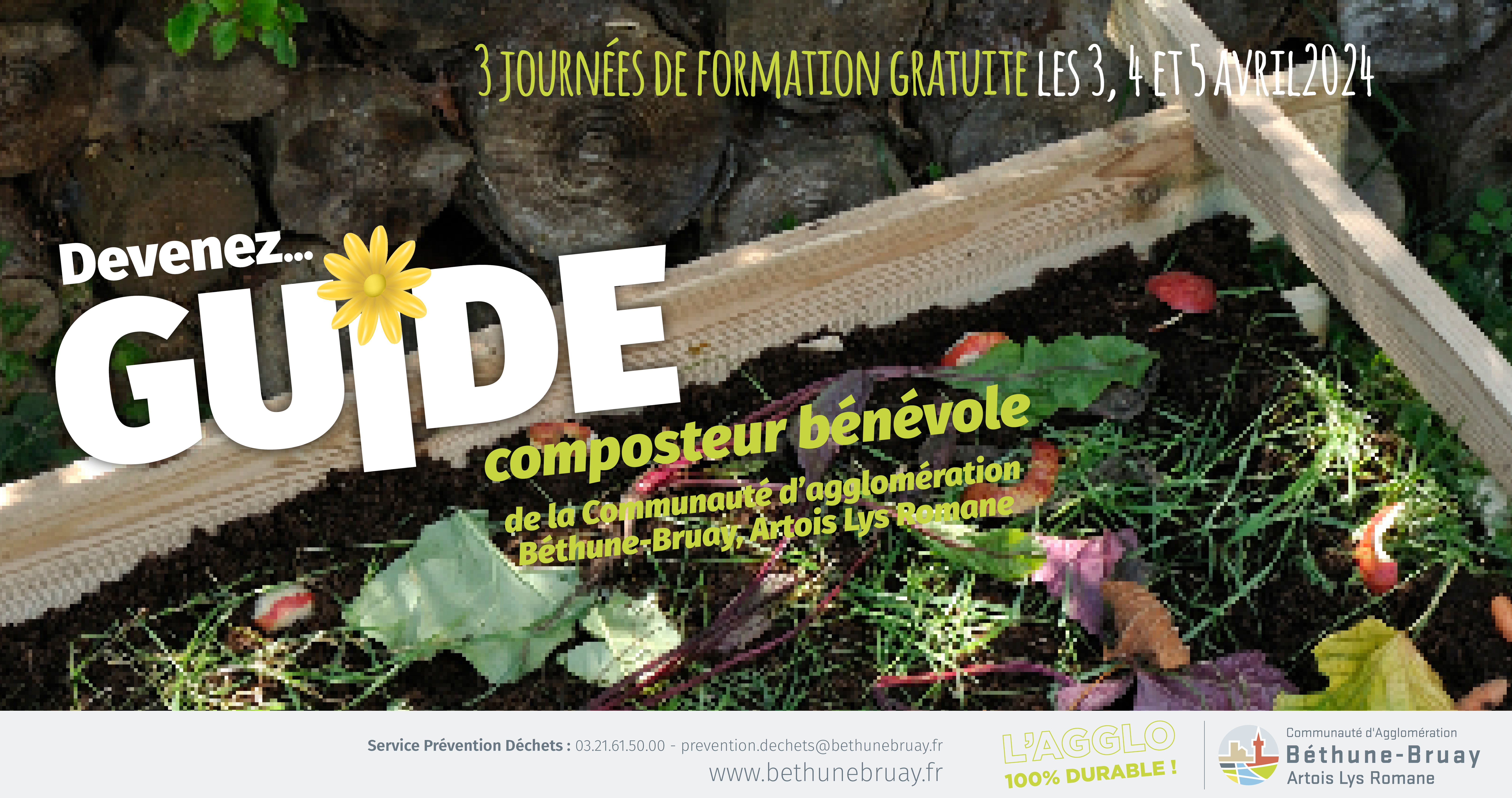 - Sensibiliser et conseiller : en tant que Guide Composteur Bénévole, vous aurez l'opportunité d'informer et de conseiller les habitants de la Communauté d'agglomération sur les techniques de jardinage "zéro déchet". Vous jouerez un rôle clé dans la promotion du compostage et dans la sensibilisation à l'importance de réduire nos déchets.