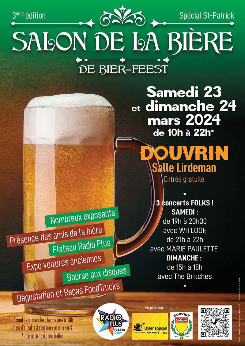 e patrimoine brassicole sera mis à l’honneur puisqu’à la salle Lirdeman rue séraphin Cordier à Douvrin, Radio Plus organise le salon des bières artisanales de la région Nord Pas-de-Calais Picardie sur le thème de St Patrick avec de nombreux concerts de folk avec également un grande bourse aux disques.