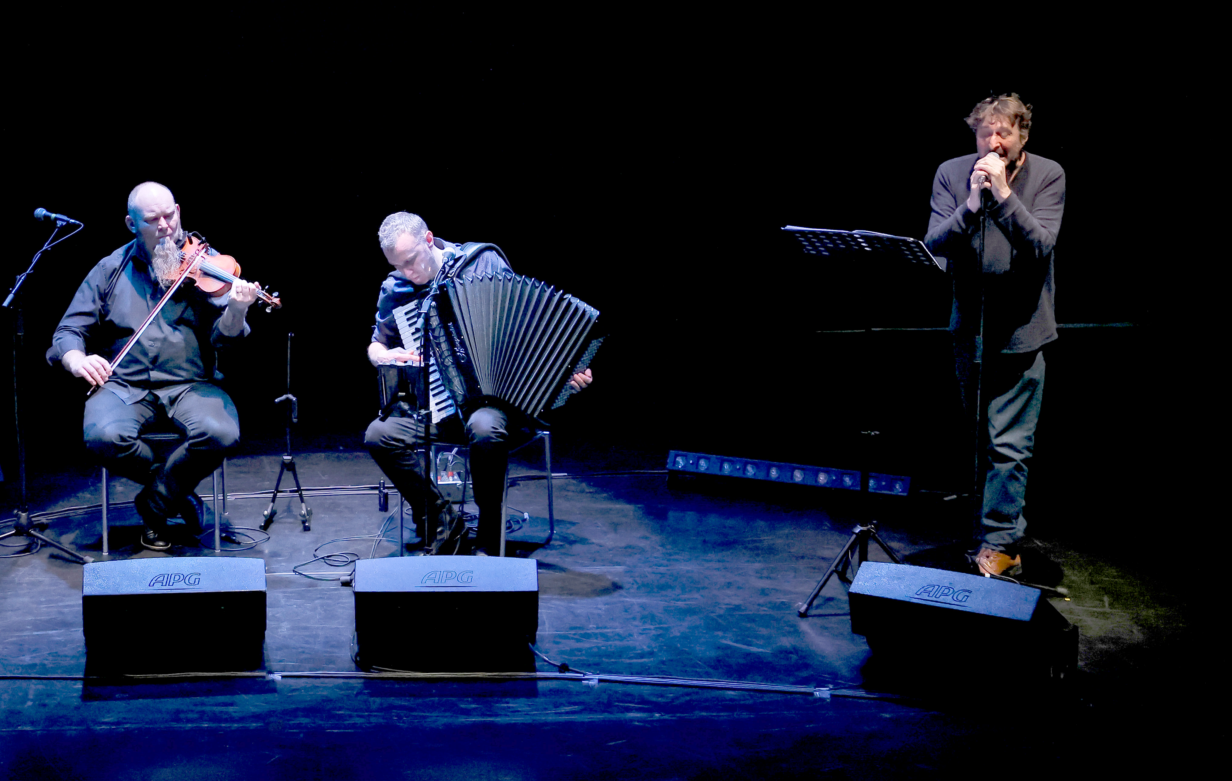 Histoire d’Eux, c’est la complicité d’un violoniste (Antoine Marhem) et d’un accordéoniste (Jonathan Bois) qui vous enveloppent de notes et vous transportent dans un film. Quelques notes et votre imaginaire invente les scènes et le fil de l’histoire. Le cœur qui bat, le papillon qui s’agite, l’enfant qui court… l’amour, la légèreté, le jeu… chacun compose son poème sous l’eau, dans les airs ou sur terre. Ils invitent pour l’occasion Loïc Lantoine (voix et poésie) qui partage leurs aventures depuis la sortie de leur album Pendant c’temps-là.