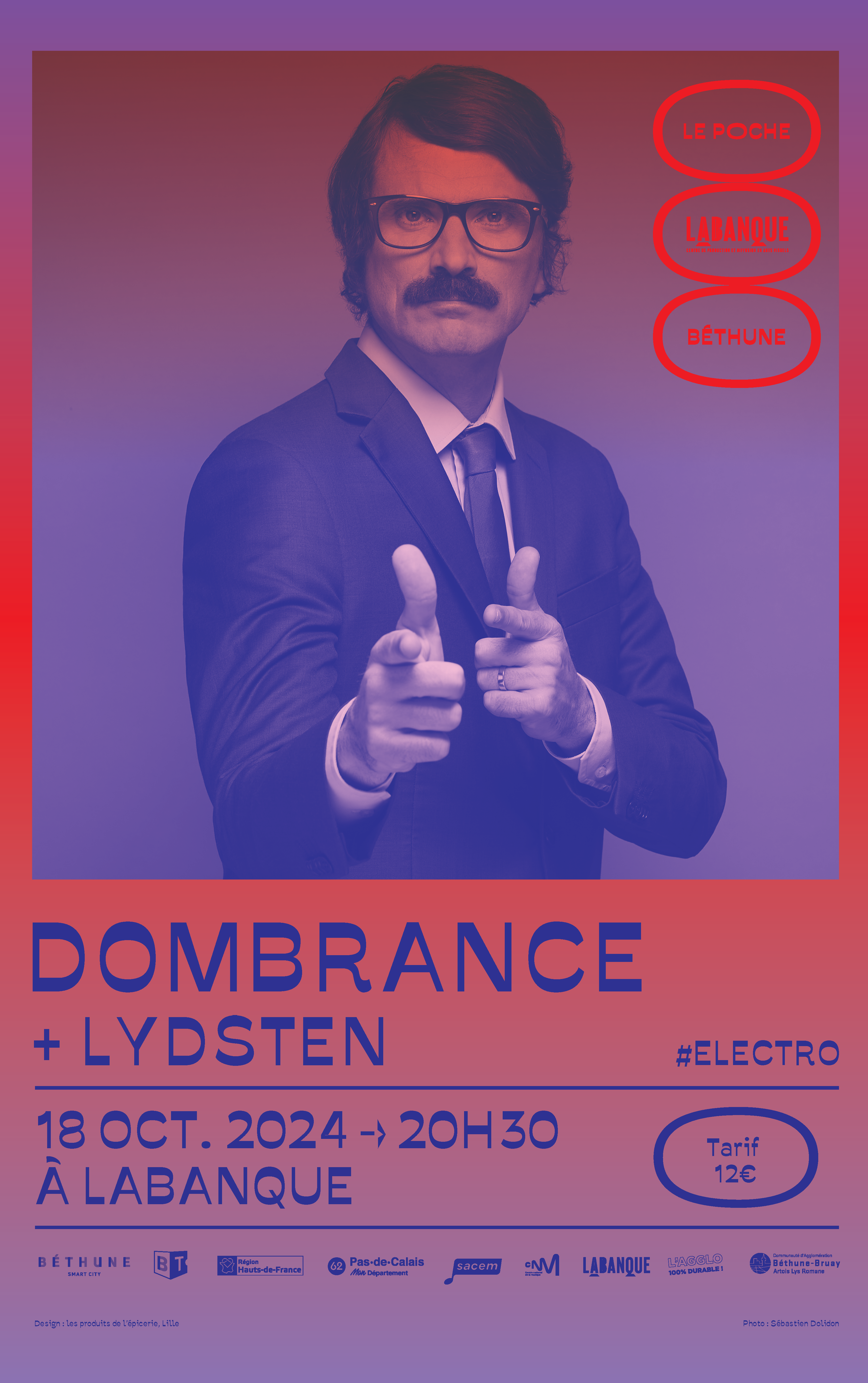 LE VENDREDI 18 OCTOBRE À 20H30 Pour cette première, retrouvez l’artiste électro Dombrance qui parcourt la France et le monde avec son concert « Pour une France qui danse » et Lydsten en première partie avec une musique mélangeant techno et électronica. __________________ DOMBRANCE Armé de son canon à confettis et de sa plus belle moustache, il a retourné sa cuisine, sa salle-de-bain et la chambre des enfants pendant le confinement…Dombrance, l’homme qui fait rimer politique et clubbing depuis son passage aux Trans Musicales de Rennes en 2018, poursuit son projet electoralo-musical fou : Pour Une France qui Danse ! + LYDSTEN Artiste solo sur scène comme en studio, Lydsten tient ce contraste de ses racines scandinaves dans lesquelles il puise son inspiration pour développer un univers personnel de textures sonores et de mélodies aériennes. Autodidacte, c’est accompagné de ses synthétiseurs analogiques et boîtes à rythmes qu’il donne vie à un mélange de techno puissante et l’électronica organique et contemplative. Lien vers la billetterie :https://www.theatre-bethune.fr/Bethune/detailspectacle/404 → Billetterie en ligne sur l’application B-Tick 03.21.54 97.40 → Concert à Labanque, 44 Place Clemenceau, 62400 Béthune