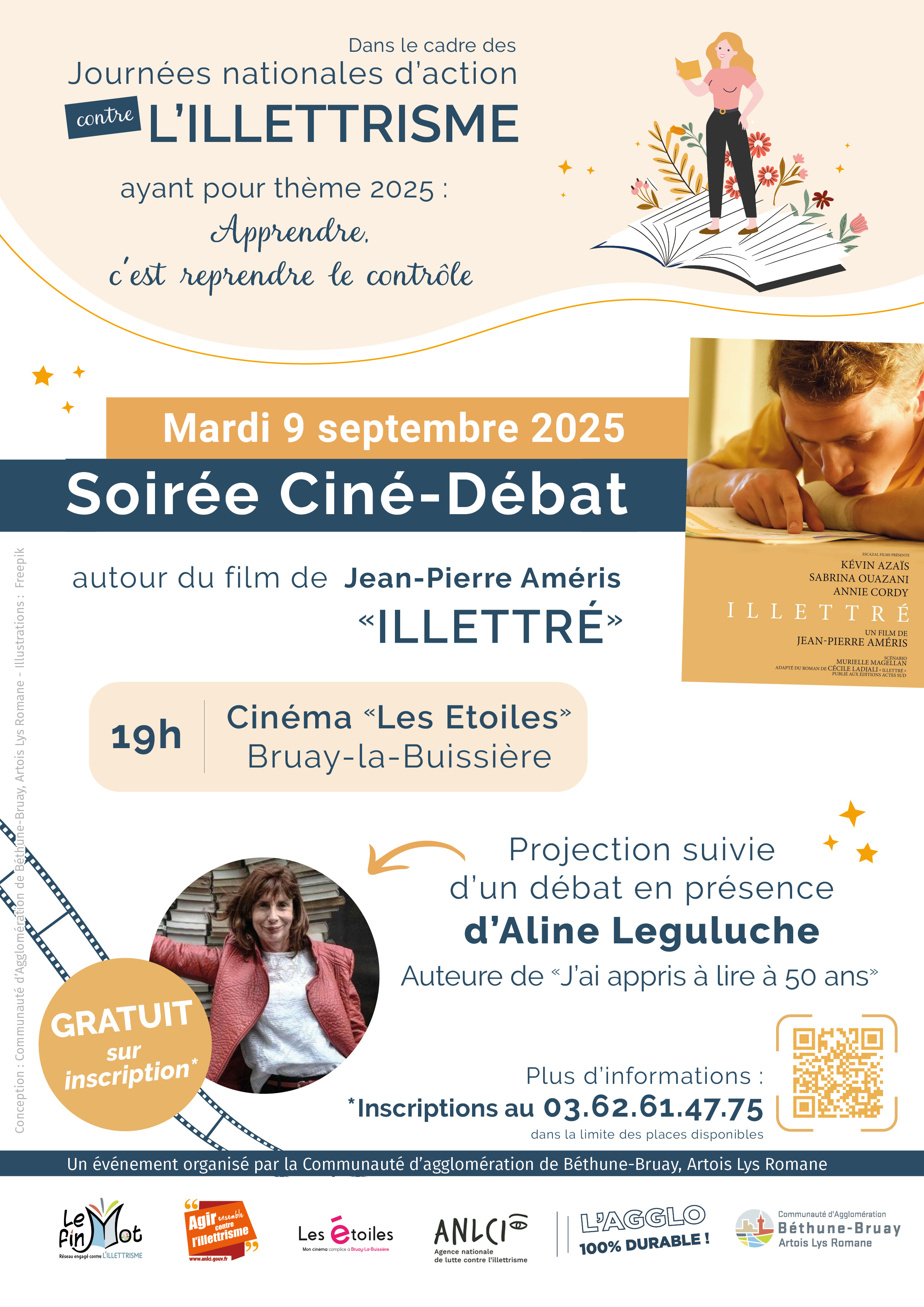 La projection sera suivie d’un débat en présence d’Aline Leguluche, autrice de « J’ai appris à lire à 50 ans » et « Mon combat contre l’illettrisme ».