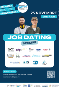 Du 25 Nov Emploi JOB DATING : "L’Industrie recrute sur Béthune-Bruay" Loisinord stade de glisse / Noeux-les-Mines 08h30 - 12h Partager cette page Facebook Twitter Google Linkedin Viadeo