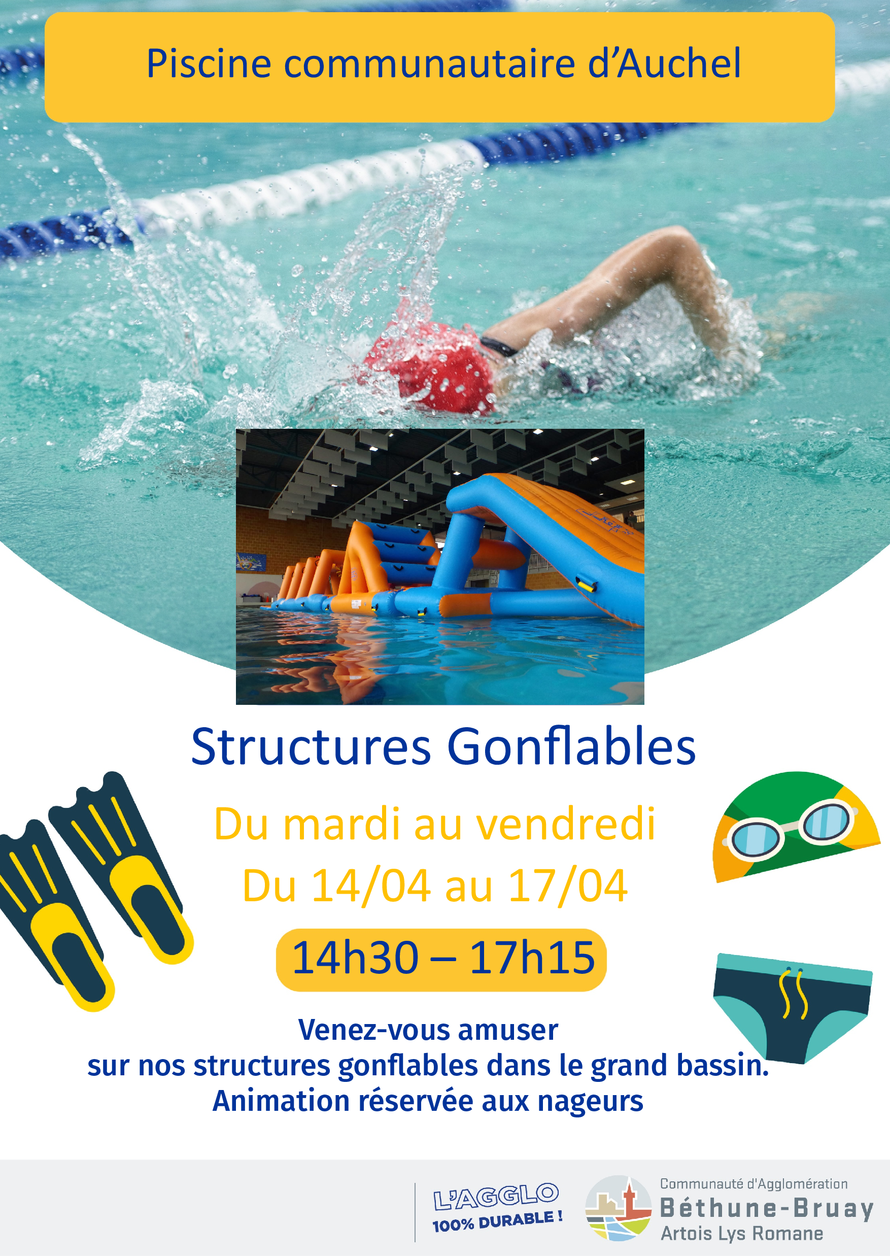 La piscine communautaire d’Auchel se situe rue Léon-Blum. L’établissement est équipé de deux bassins de natation : un grand bassin de 25 m et un petit bassin de 15 m. Un espace bien-être avec deux saunas et une salle de sport comprenant deux tapis de course, 5 vélos elliptiques et 5 vélos sont aussi accessibles. Ouverte toute l’année, la piscine propose plusieurs activités aquatiques : cours de natation, jardin aquatique, aquagym, etc. Bonnet de bain obligatoire.