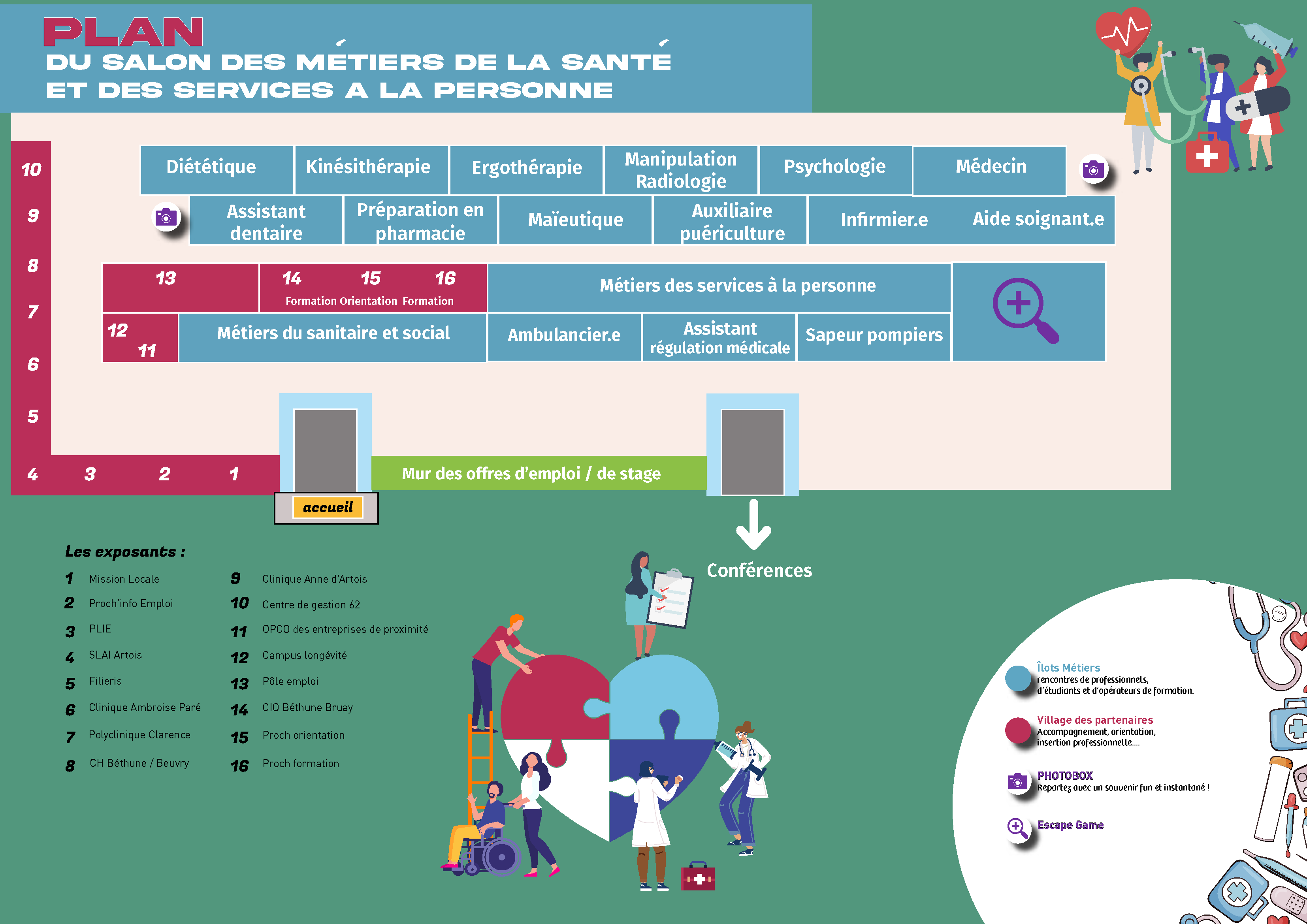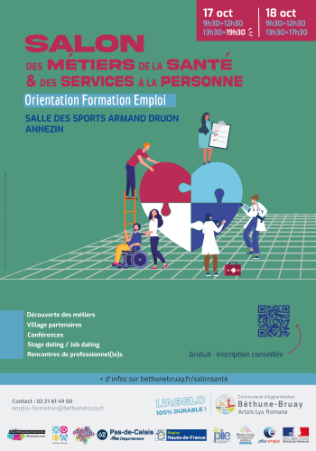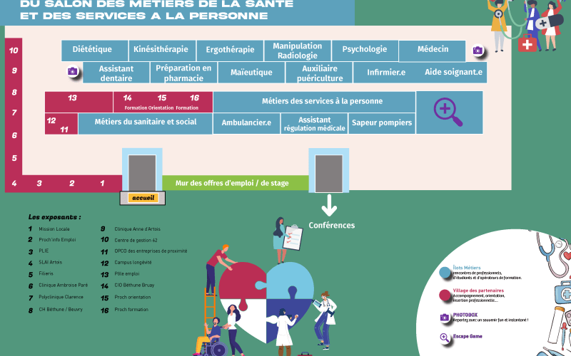 Vous vous interrogez sur votre orientation ou celle de votre enfant ? Vous souhaitez en savoir plus sur le financement ou le contenu d’une formation ? Venez découvrir les métiers de la santé et des services à la personne (auxiliaire de vie, infirmier, ambulancier, manipulateur radio, médecin, puericulteur, technicien de laboratoire…) et participez à des temps d’échanges avec des professionnels de santé, des organismes de formation, et les partenaires emploi-formation.