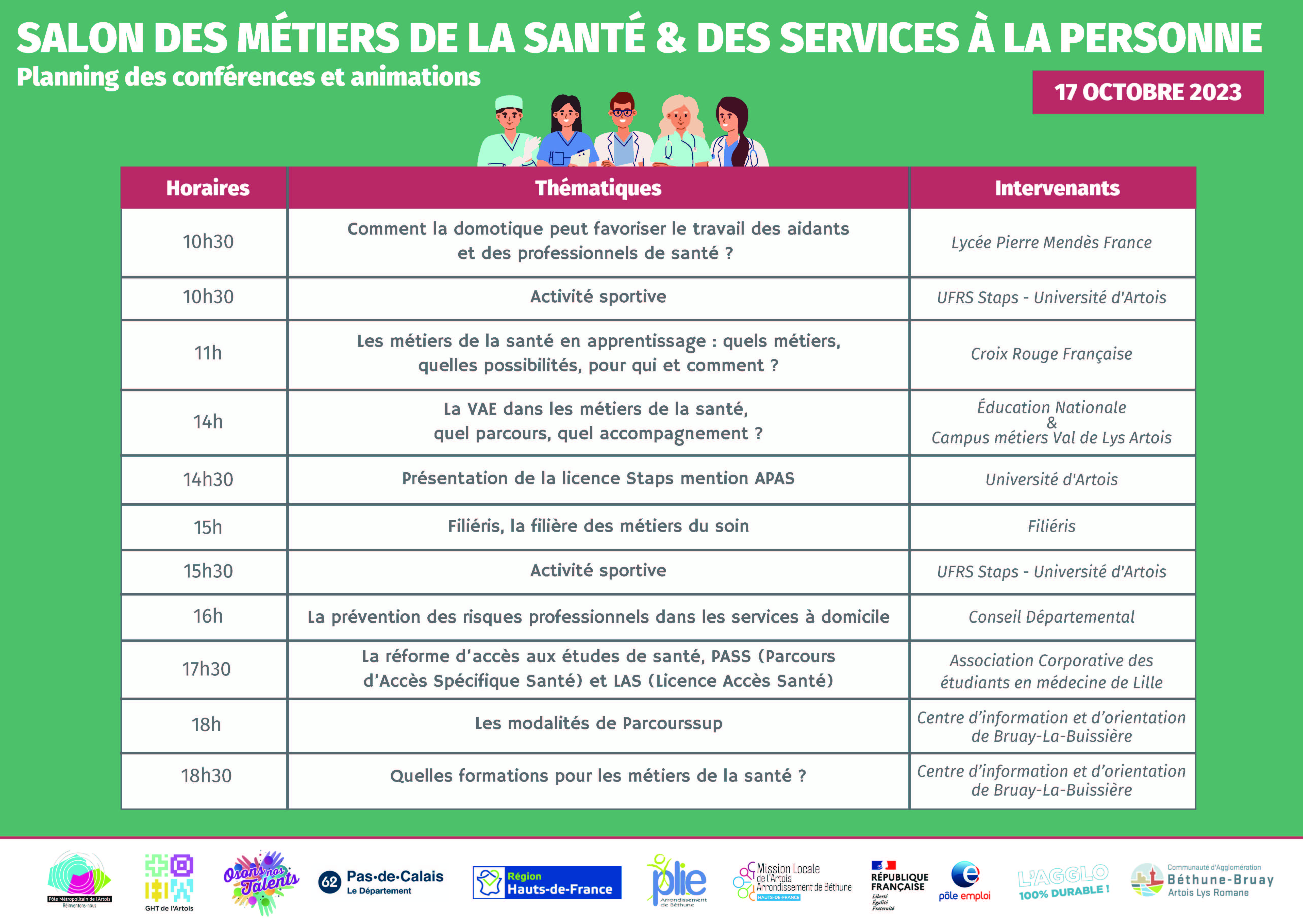 L’Agglomération en lien avec ses feuilles de route Emploi-Formation et Santé met en place le Salon des métiers de la santé et des services à la personne pour sensibiliser sur les opportunités d’emploi et de formations dans ce domaine mardi 17 et mercredi 18 octobre 2023