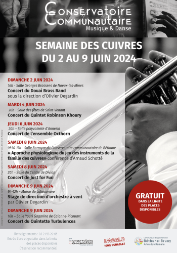 Du 2 au 9 juin le conservatoire communautaire vous donne rendez-vous pour la semaine des cuivres.